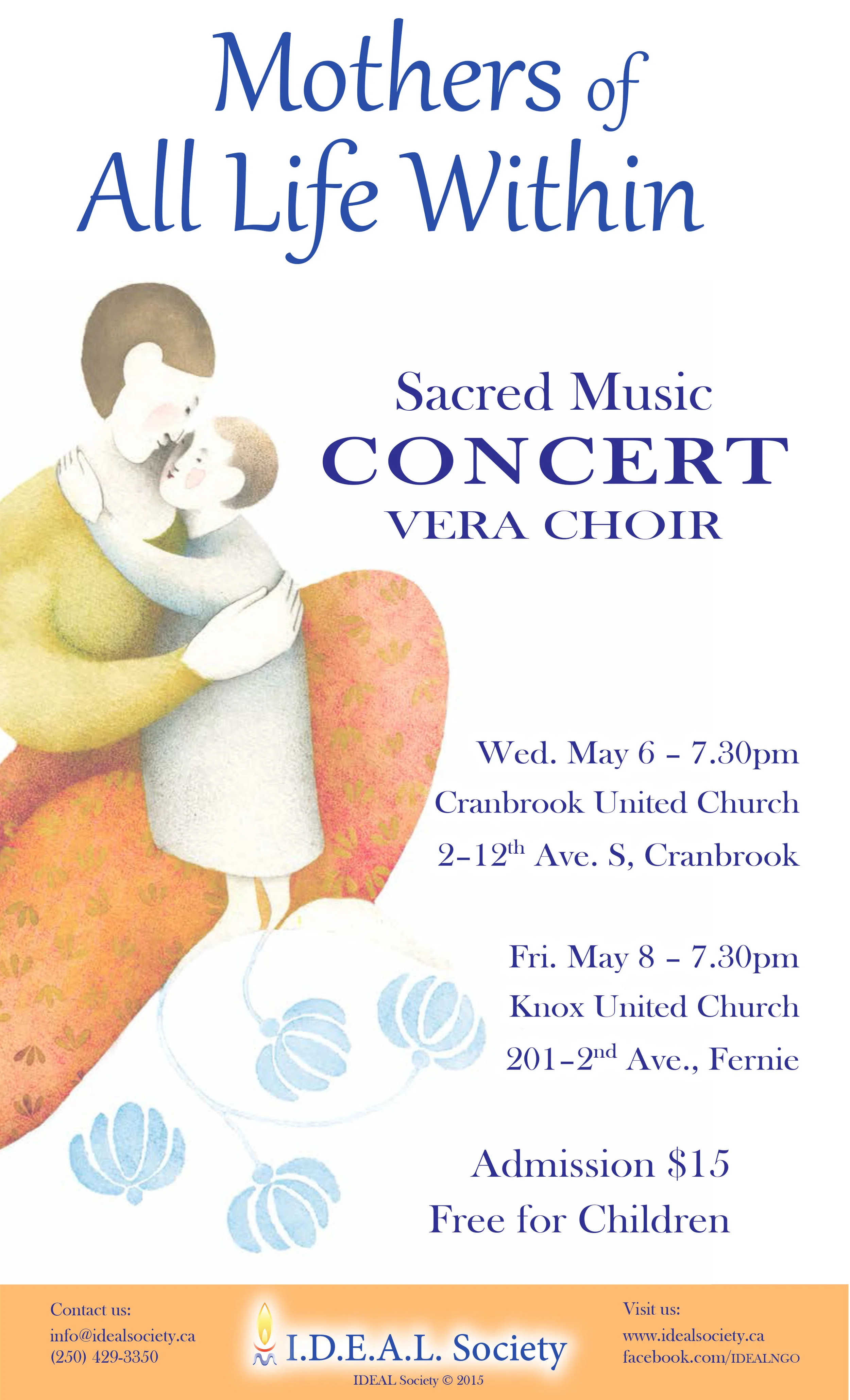 Mother's Day Concert Wednesday, May 6, 2015 7:30 PM 9:30 PM 19:30 21:30 United Church 2, 12th Ave S Cranbrook, BC Canada (map) Google Calendar ICS View fullsize