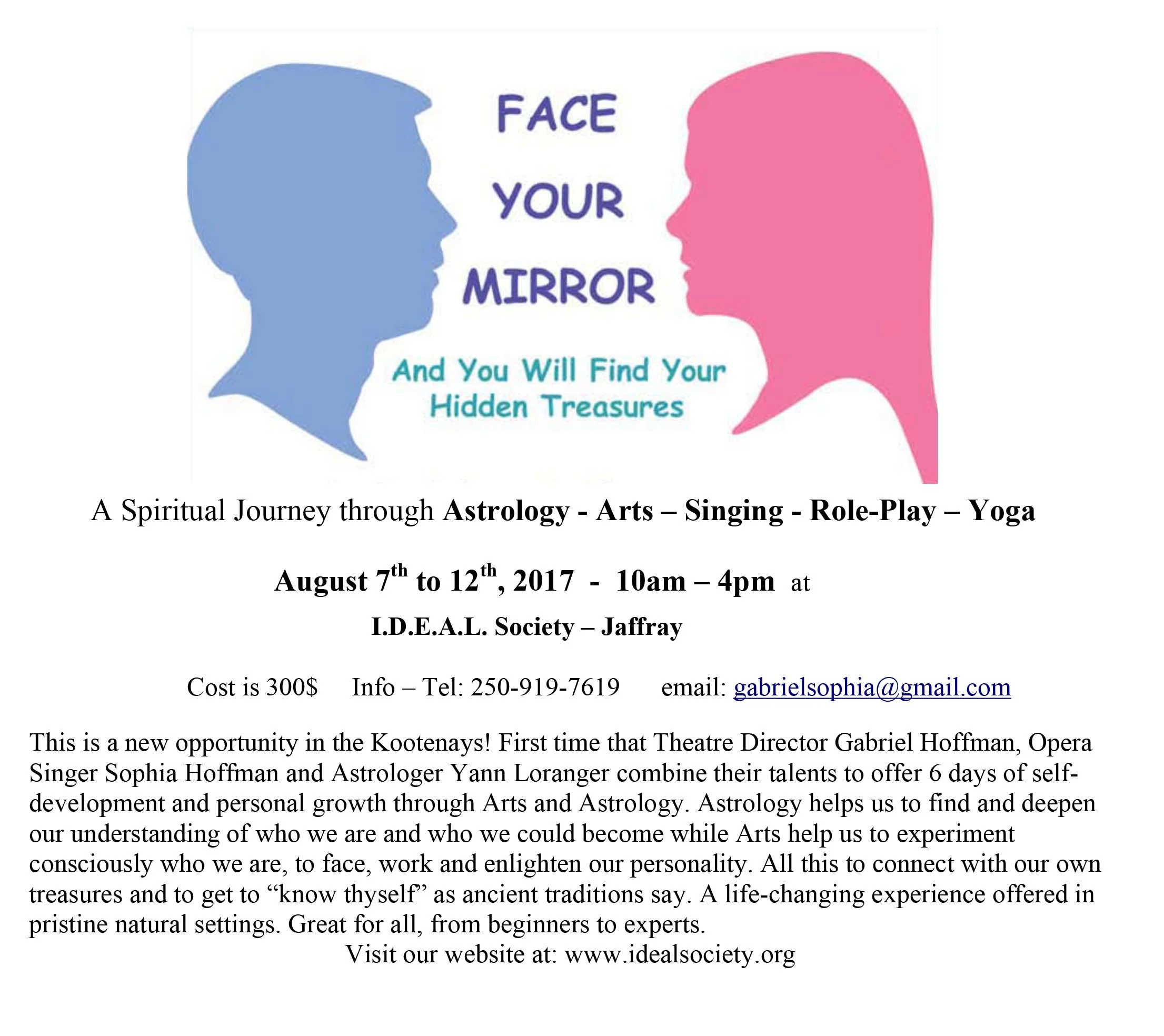 This day camp taught by Gabriel Hoffman & Yann Loranger is for adults who wish to deepen their knowledge of Theater & Astrology, and experience a psychological approach to acting on the theme of "Know Thyself".